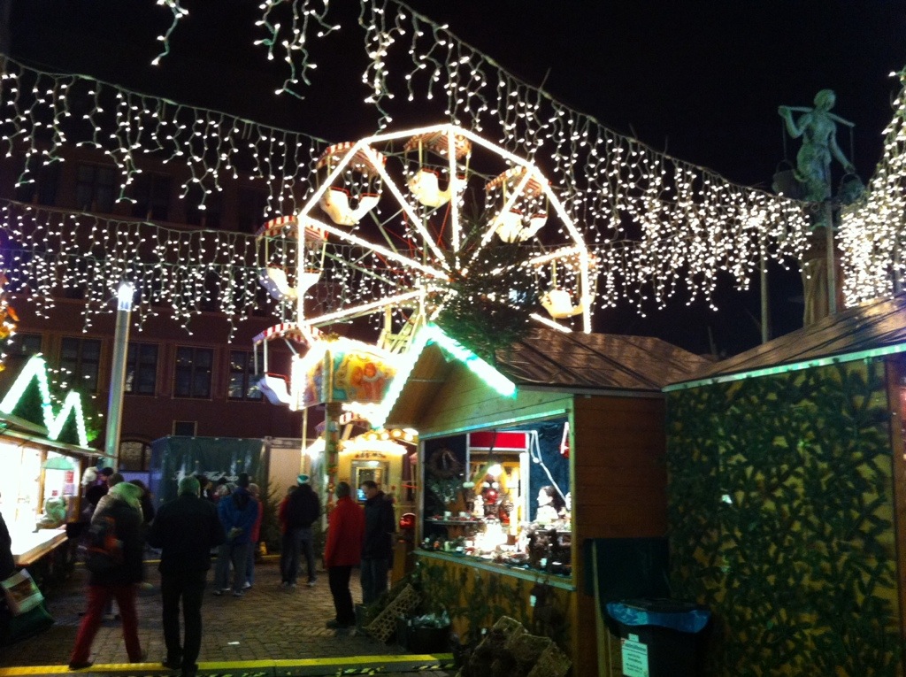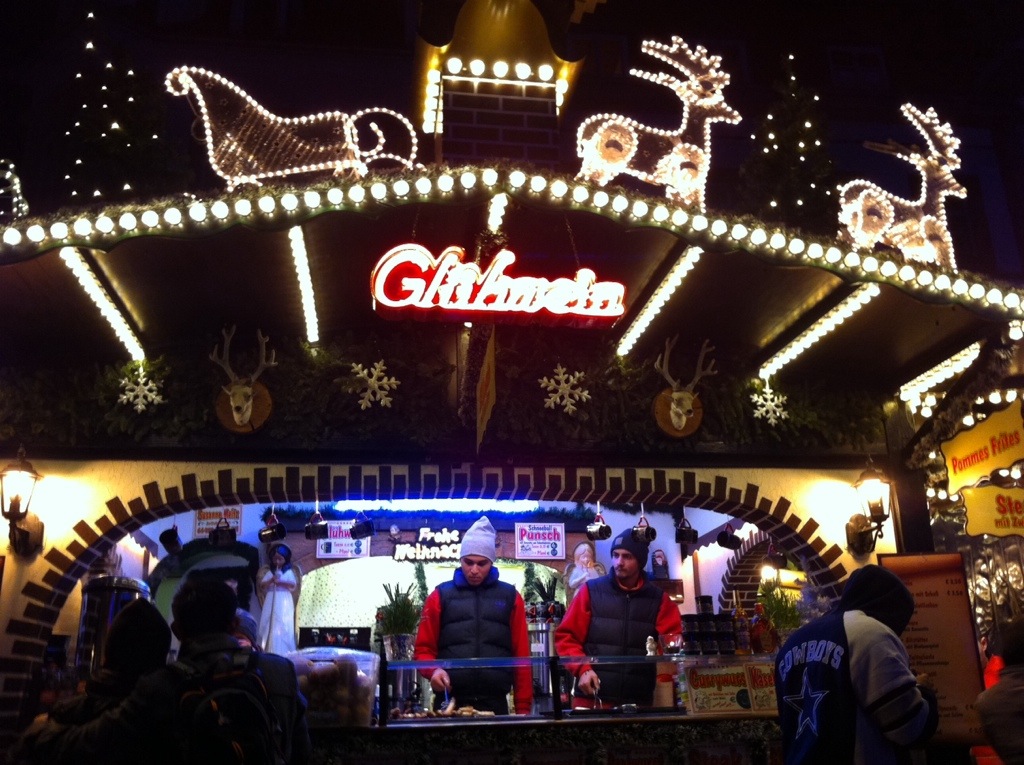 Imagine this – it’s 7 p.m. and 35 degrees outside (we’re talking Fahrenheit here). You walk 15 minutes to the city center, and upon turning the corner at the Müller, BAM! There are booths on top of booths decked out in garland, holly, and lights, each selling some kind of food, drink, or craft. It’s like Santa’s Enchanted Forest in Miami, but without the 2,000 middle and high schoolers on awkward dates.