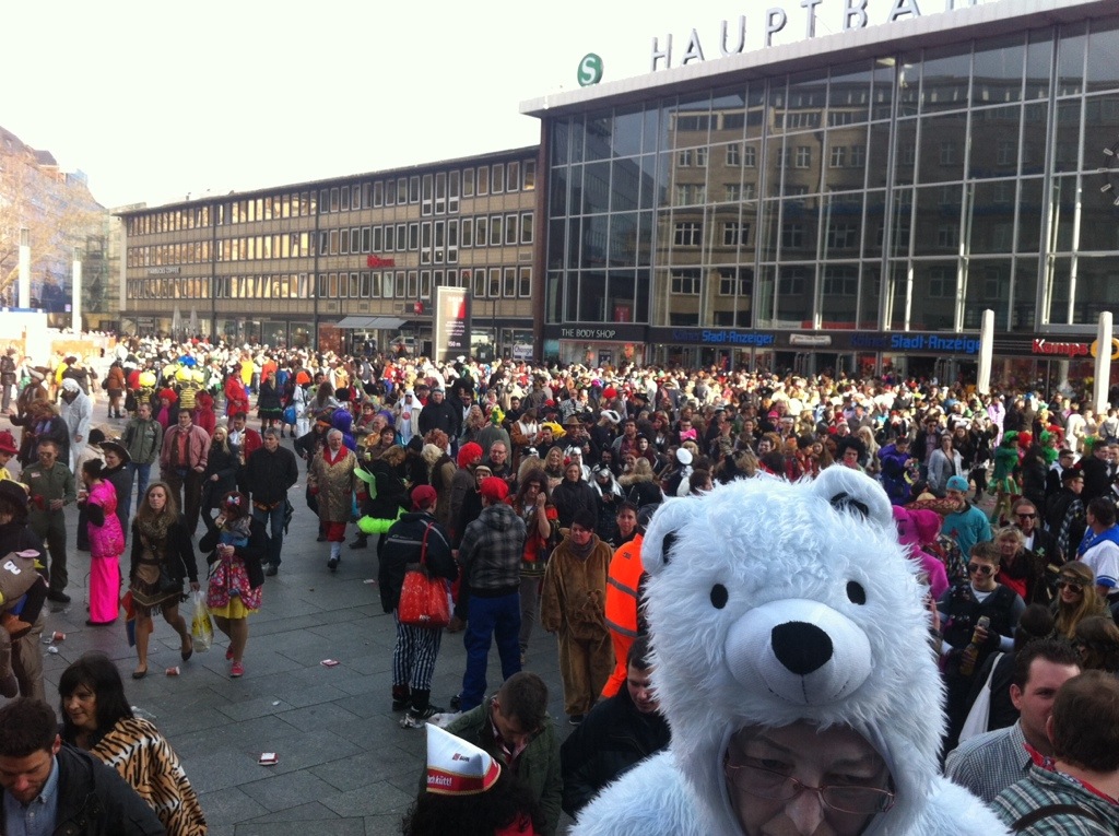 Anyway, we wanted to go to Karneval in Cologne because we had heard that the celebrations are craziest there. I am very glad we gave it a shot, but I will not be going back for these celebrations any time soon. Brian describes it best, calling it Halloween and Spring Break all rolled into one. While I love a good costume and a good beer, it was overwhelming and somewhat of an assault on the eyes and ears (and actually, on the nose, too… the whole city seemed to reek of stale beer).