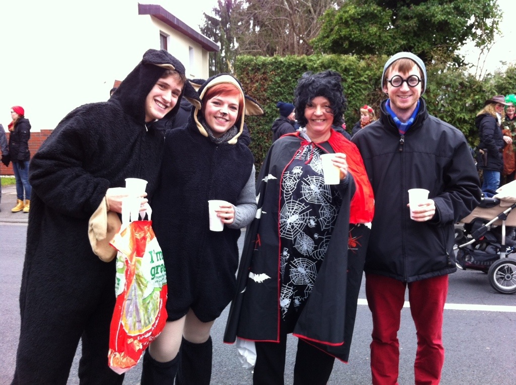 Contrastly, we went to a small Karneval parade in the neighborhood of Holzlar in Bonn (where our Couchsurfing hosts lived), and we had a blast! They taught us that if we yelled “kamelle, kamelle!” people riding on the parade floats would throw candy at us (and they had good aim – we got smacked in the head with multiple varieties of hard candy, including mini Mars bars). Next time I will wear a helmet, but I digress.